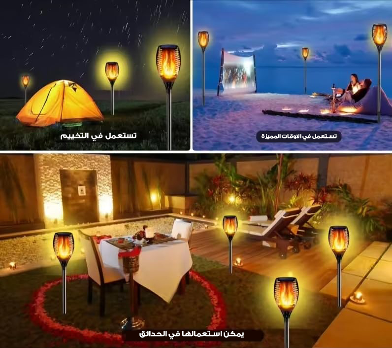 إضاءة تشبه اللهب تعطي جو رايق للمجالس والحدائق.