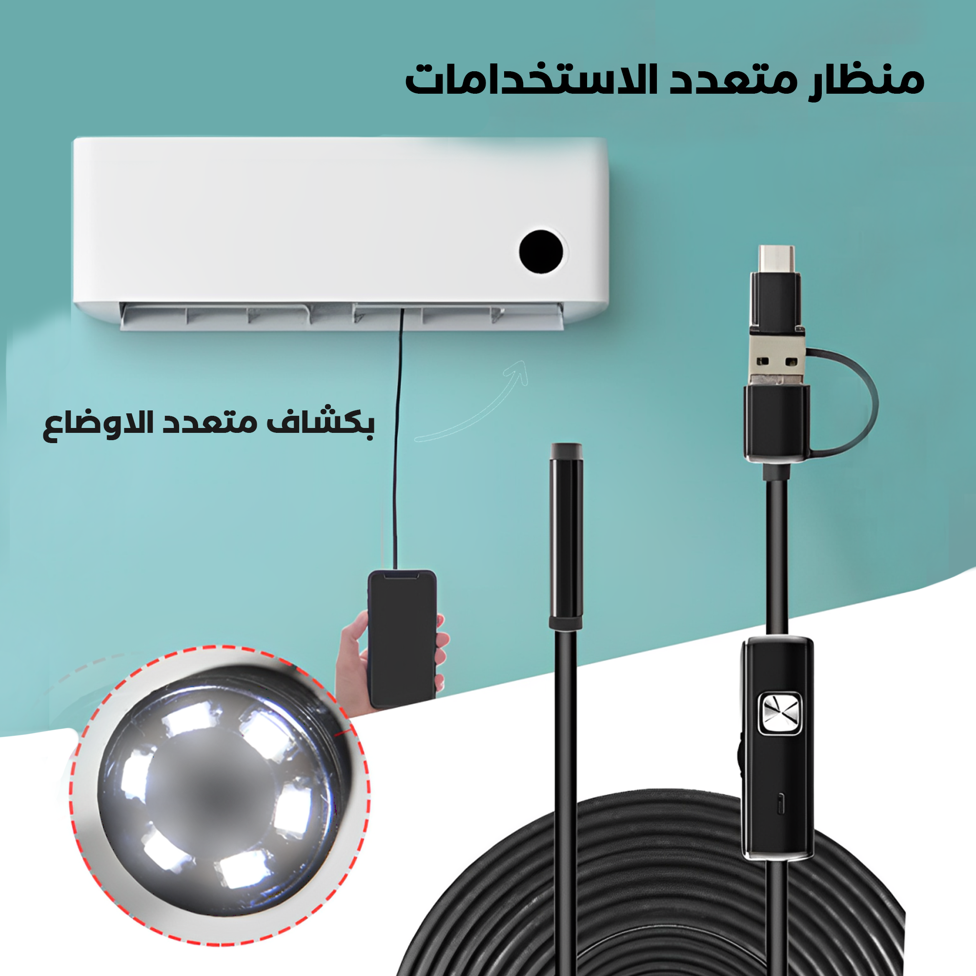 – يفحص الأماكن الضيقة مثل داخل المحركات، الأنابيب، أو الأجهزة الإلكترونية.